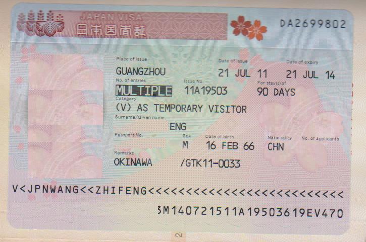 **领事馆规定: 3年多次往返签证第一次赴日, 没有去冲绳的将被注销此签证。**