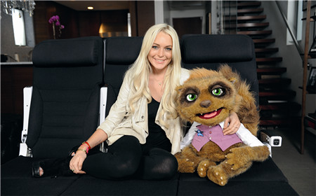 图为Rico与林赛·罗韩(Lindsay Lohan)在Skycouch上卧谈