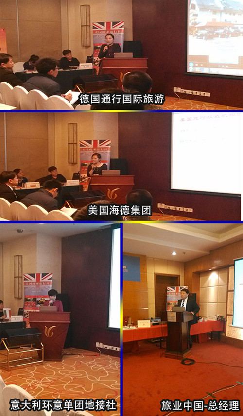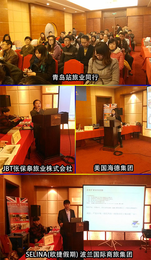 1月17日青岛站:旅业中国-国际旅游交易网第三站来到了美丽的海滨城市青岛,旅业中国总经理陈旗致词并主持了青岛站出境游同行洽谈会,SELINA(欧捷假期) 波兰国际商旅集团李超,美国海德集团闫瑞,JBT张保皋旅业株式会社金民炅,为旅业同行们带来了精彩演讲。