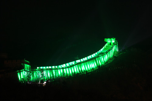 八达岭长城点亮绿色,2014爱尔兰“绿动全球”欢庆圣帕特里克节