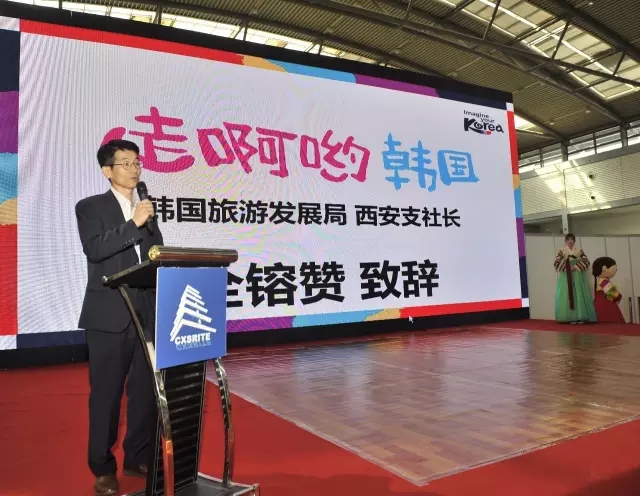 韩国旅游发展局西安支社长全镕赞2015丝路旅博会活动现场致辞