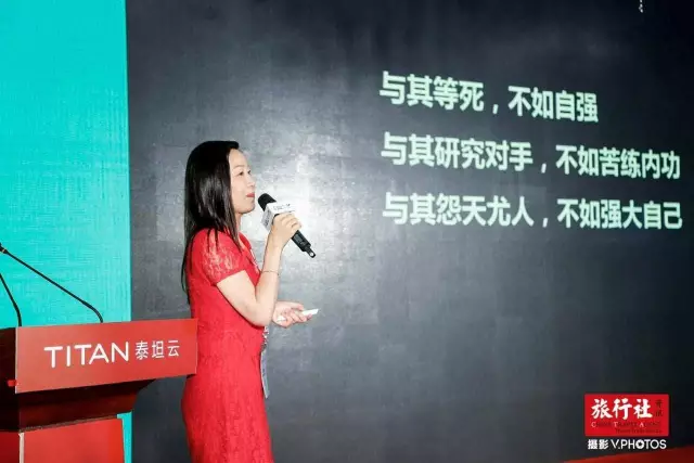 本次大会的女主持、众信旅游CMO兼零售运营中心总经理段红娟也上台发表演讲,她列举了很多事例与到场嘉宾探讨了一个十分实际的问题:我们的客户是如何漏掉的。她的精彩发言简单总结为几句,定位自身,定位用户,找准客人,有取有舍,深入一线,寻找漏洞,最后一句,把漏洞模块化,优化信息系统快速迭代。