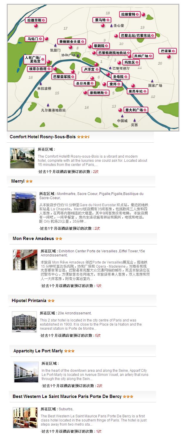 介绍: 法国巴黎优惠酒店: comforthotelrosny-sous-bois:395元, merryl:420元, monreveamadeus:440元, hipotelprintania:440元, appartcityleportmarly:440元, bestwesternlesaintmauriceparisportedebercy:560元! 旅游、机票、签证、租车、酒店服务*深圳旅行社Benny,13828864412 QQ:459477409 http://weibo.com/bennychee http://t.q.com/bennychee