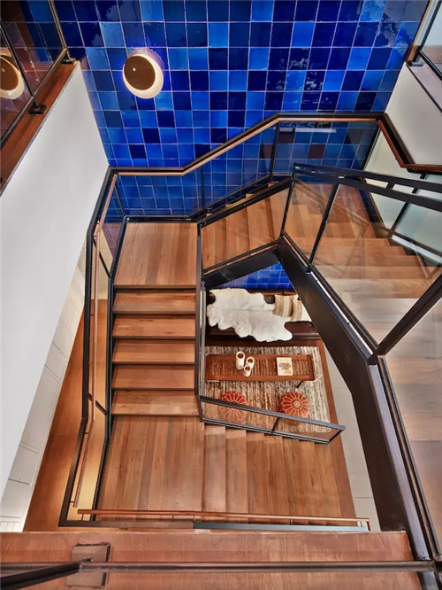 穿过大堂,沿着走廊继续前行,则到达了一处以玻璃做分割的公共空间,这里包括一个客厅、会客厅,以及提供阅读灯和书桌的临时办公室。其中,客厅的天花板是用木头搭配纺织布料制作而成的,材质的搭配传递出一种温暖的感觉。