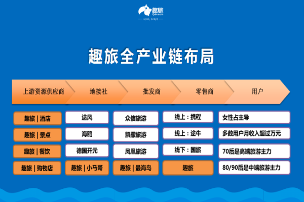在实践中,趣旅重点布局了四个板块,围绕着布局海岛地接社、购物店、酒店、建立船队等展开海岛全产业链布局。