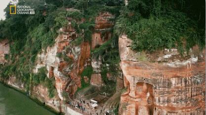 △著名的乐山大佛,世界第一大佛。与山齐,足踏大江,体态匀称,神势肃穆,依山凿成临江危坐。佛经说弥勒出世就会“天下太平”,弥勒佛既是能带来光明和幸福的未来佛。