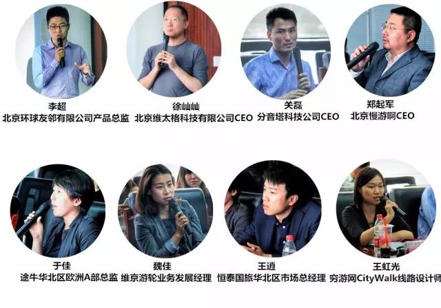 4月27日旅游刊第二期闭门沙龙上,北京维太格科技有限公司(以下简称:亿点链接)CEO徐屾屾、北京环球友邻有限公司(以下简称:环球漫游)产品总监李超、北京慢游啊CEO郑起军、分音塔科技公司CEO关磊、途牛旅游网华北大区欧洲A部总监于佳、维京游轮业务发展经理魏佳、恒泰国旅华北区市场总经理王逍、穷游网City Walk线路设计师王虹光共同针对智能服务类工具在红海下的“趋势”、“突破”和“重构”进行了热烈的探讨交流。