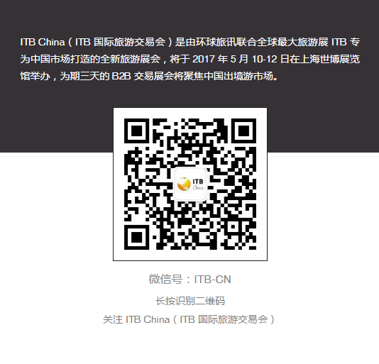 ITB China即将于5月10日在上海世博展览馆迎来首秀。这场万人期待的行业展会将给我们带来哪些惊喜呢?又将有哪些精彩的会议环节呢?细细品读,你就知道为何ITB China不容错过。5月8日将是旅游行业人士免费注册的最后一天,用一分钟来完成注册就可以实现一个小目标!