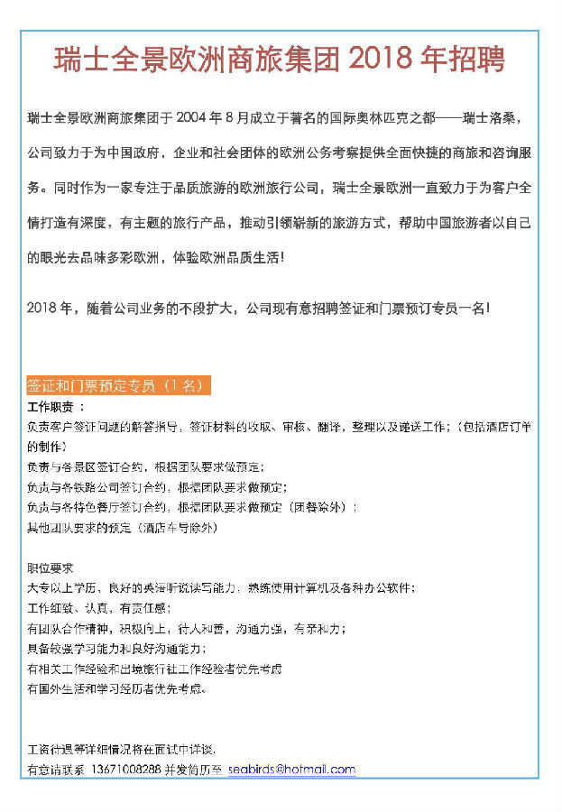 意大利欧佳途旅行社 招聘