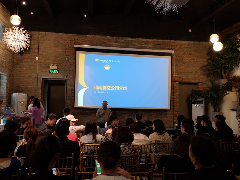 5月8日,北京名扬国际旅行社有限公司联合越南航空公司北京代表处成功举办“至岘至美 丰富多彩 叻在其中”2019越南航空旅游新产品推介会。推介会的主题是以越南新产品中的四个主打城市岘港、美奈、富国岛、大叻的名字贯穿起来,让参会的同业嘉宾们对越南的旅游了解的更加深入。推介会还为各位同业嘉宾准备了丰富的茶点、饮品,特别是还有越南空运来的大叻红酒和越南河粉。