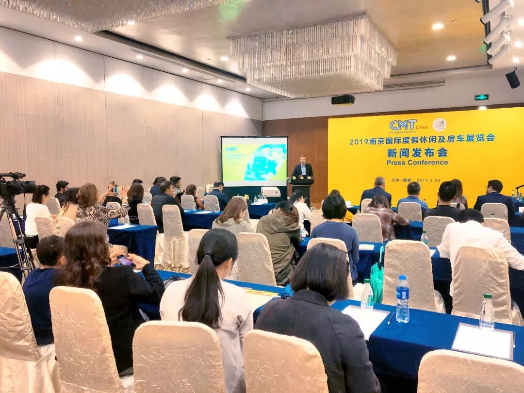 5月30日下午,备受瞩目的2019南京国际度假休闲及房车展览会(CMT China)新闻发布会在南京国际博览会议中心举办。南京市文化和旅游局旅游推广处处长张贤先生、伊朗旅游驻华代表何飞先生、南京斯图加特联合展览有限公司执行董事宋瀚思先生、德国斯图加特展览公司全球旅游及房车品牌总监亚历山大·奕格先生出席了此次新闻发布会。
