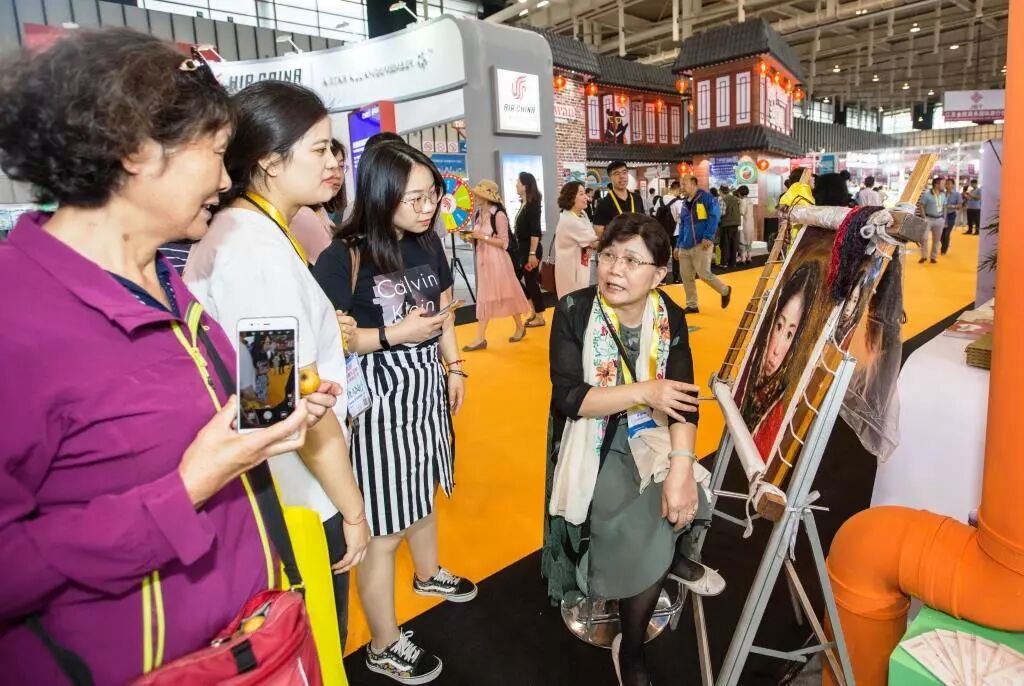 常州展馆独树一帜,匠心独运。用年轻活力的橙色,十分抢眼,常州非遗艺术家更是亲临展馆现场,为来宾们演示常州非遗文化乱针绣的精髓和技艺要点,引得现场朋友们兴趣十足,都想上手一试。