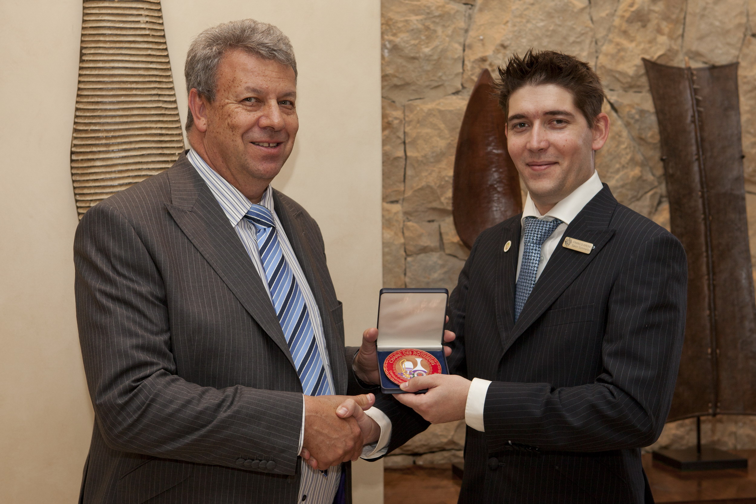 近日,Saxon精品酒店侍酒师Francis Krone在西班牙桑坦德参加了由法国美食家协会举办的2010年国际青年侍酒师大赛,并取得联合优胜第四名的好成绩,他带着象征荣誉的奖杯回到南非约翰内斯堡,与大家共享喜悦之情。