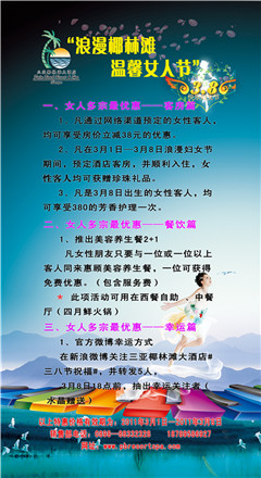 “三八”妇女节优惠给力 椰林滩大酒店做足“女性文章”