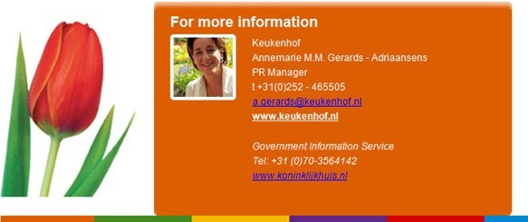 库肯霍夫已于3月24日开园,展期将持续到5月20日。在此期间预计将有 80万人前来参观,其中大多数游客来自海外。去年约有78%的游客来自荷兰之外的地区。特别是来自中国和印度的游客出现了爆炸性增长,而俄罗斯和其他东欧国家的游客数量也保持稳步上升。