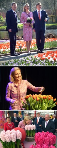 荷兰丽兹 — 德国总统夫人贝提娜?伍尔夫女士为第 62 届世界闻名的荷兰丽兹库肯霍夫公园花卉展揭幕。共同参加开幕式的还有德国总统克里斯蒂安?伍尔夫和荷兰王储威廉?亚历山大及其他要员。开幕式上,伍尔夫女士为以她的名字命名的郁金香进行了洗礼,该郁金香为一种新培育出的红黄颜色搭配的郁金香。