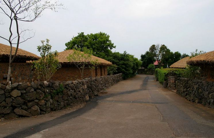 城邑民俗村由于位于济州岛上,因而也完全反映了济州岛独特的居住文化。你在这里可以看到那看似堆得稀稀疏疏的挡风石墙(黑熔岩石),为了防止风直接进入里屋而建得又直又弯的“奥来”(窄胡同),还有成为济州岛之象征的石神像(Dolharubang)。济州岛特有的东西中尤为有名的是黑毛的土种猪和“通西”(猪圈兼厕所)。这里的土种猪吃人粪,其营养丰富,肉味可口,十分有名。这里都是现代社会已难得一见的传统,因而更增添了几分别样风味。